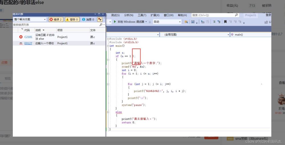 - C2181:没有匹配if的非法else