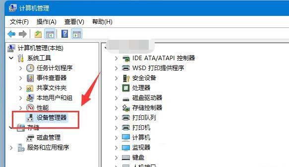2、计算机管理窗口,左侧点击【设备管理器】;
