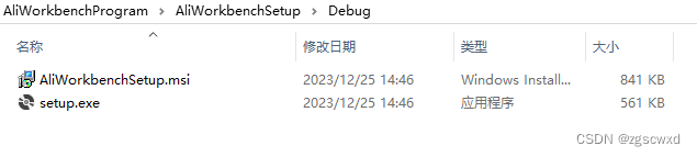 7.2 在您新建的Setup项目的目录下即可看到如下文件,debug文件夹,会看到生成了两个文件“XX.exe”和“XX.msi”。其中如果使用exe文件进行安装,则必须要有.msi文件。如果选择.msi文件进行安装,可以不需要exe文件