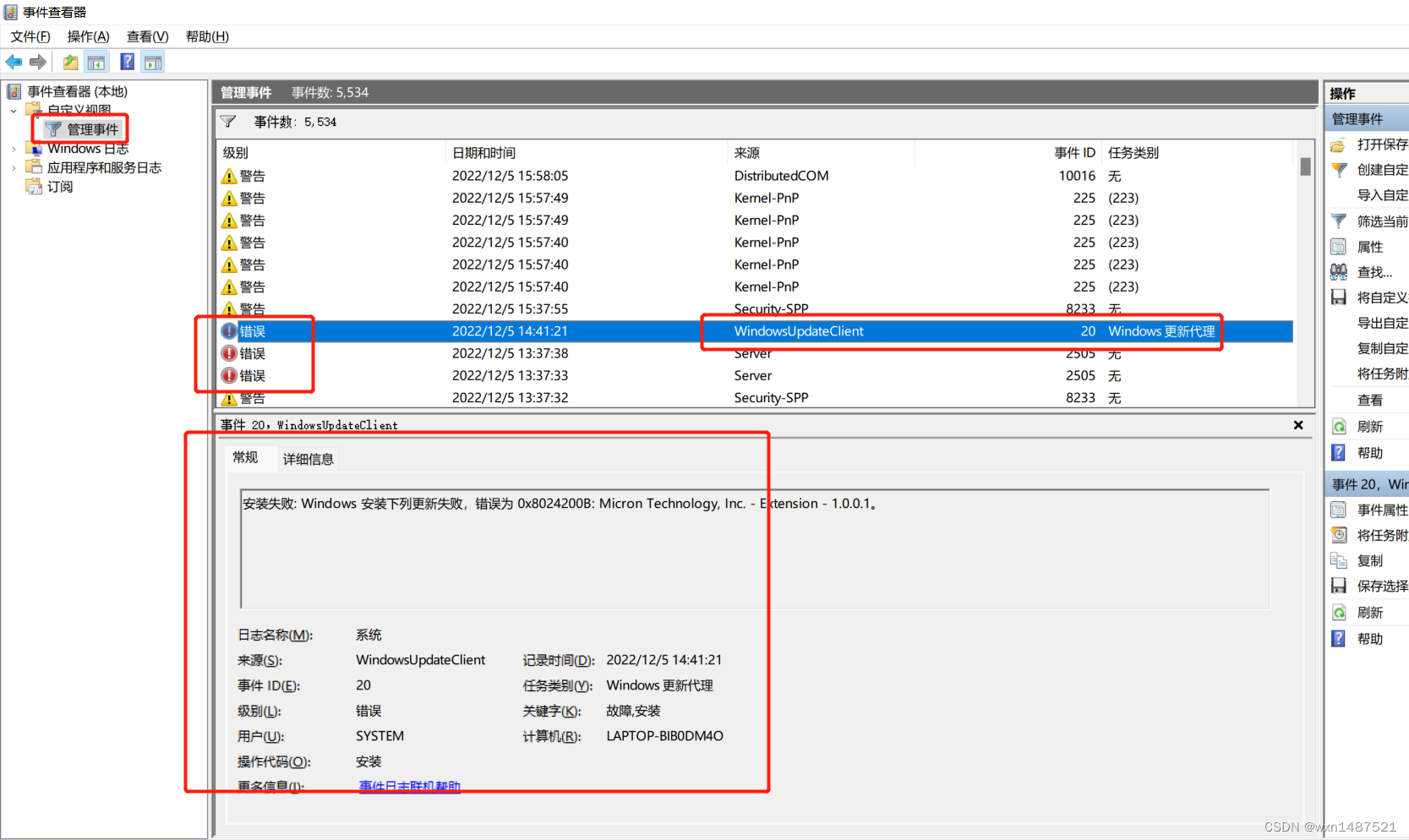 事件查看器里详细记载了系统出现的错误,可以按照来源和事件ID上网查找对应的解决方案。