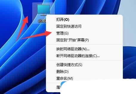1、首先,右键点击桌面的“此电脑”图标,选择打开“管理”界面。